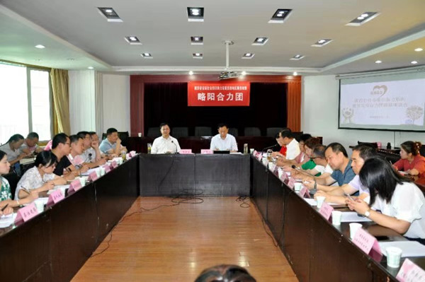 会上略阳县扶贫办领导介绍了全县脱贫攻坚工作情况,提出社会组织合力团助力帮扶支持略阳乌鸡、中药材、食用菌、中蜂等特色产业发展,协助该县招商引资增强县域经济发展后劲,帮助拓展消费扶贫模式等六个切入点;合力团成员单位分别就各自优势资源和扶贫领域进行交流发言;合力团副团长单位陕西省村社发展促进会秘书长刘冰汇报了略阳调研情况。合力团团长单位、陕西省红凤工程志愿者协会负责人班理就助力略阳扶贫方案做介绍,合力团将发动有需求的会员单位购买当地农副产品,消费扶贫;利用自身资源,指导农村产业发展,提供农业技术支持,同时帮助农民拓宽农副产品销售渠道;提供平台,培训中青年劳动力就业技能,通过就业实现脱贫;为有需求的贫困病患提供医疗保健服务;组织贫困村干部前往先进村、富裕村观摩交流,解放思想,汲取发展经验;发动会员单位对贫困学生开展救助,包括不限于资助学费、捐赠学习用品、交流学习等,使贫困学生不因经济原因而无法就学;组织志愿者开展力所能及的志愿服务,同时可帮助建立志愿者服务队、培训志愿者;结合略阳当地和各社会组织情况,合力团整合资源提供项目资金和技术服务等8方面开展扶贫工作。略阳县相关部门就各个部门扶贫工作,与合力团的融合等做了对接交流。