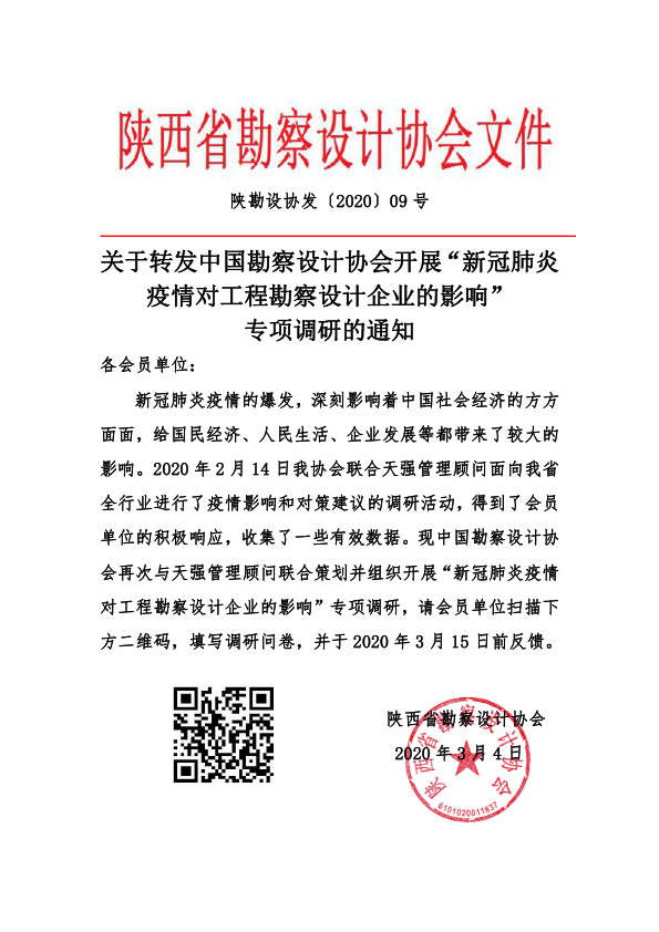 关于转发中国勘察设计协会开展“新冠肺炎疫情对工程勘察设计企业的影响”专项调研的通知