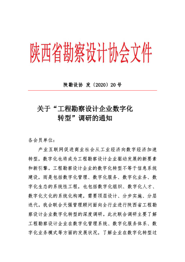 关于“工程勘察设计企业数字化转型”调研的通知