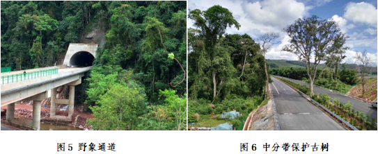 本项目被列入交通运输部“绿色公路建设第一批典型示范工程项目”。作为第一批典型示范项目中的唯一的改扩建项目,在设计、施工过程中积累了大量的实践经验。在设计过程中坚持生态选线,充分利用现有廊道资源,秉持“最小的破坏就是最大的保护”的理念,将公路“轻轻的放入自然中”;设计注重生态环境保护,对于敏感的野生大象通道,路线总体设计时采用“两隧夹一桥”的方式通过;对于沿线古树尽可能加以保护,如路线适当绕避或将古树保护于中分带之间;本项目收费站、隧道洞门等建筑物景观设计中充分考虑当地的民族、自然环境特点等,彰显民族特色。