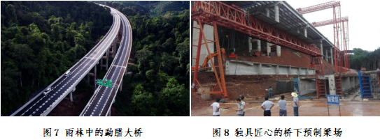 本项目部分施工标段没有理想的预制梁场地,针对这种情况,设计会同施工方反复研究比较,突破常规,提出充分利用桥下场地良好,设置预制梁场的方案。梁预制完成后,平移、提升、再平移至桥墩,完成桥梁架设。这一独具匠心的思路,最终付诸实施,为施工抢抓进度,按时保质完成工程创造了条件。