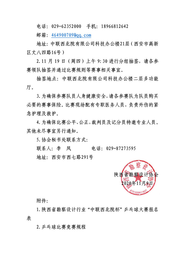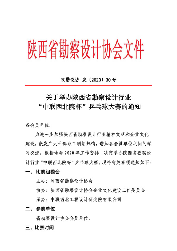 关于举办陕西省勘察设计行业“中联西北院杯”乒乓球大赛的通知