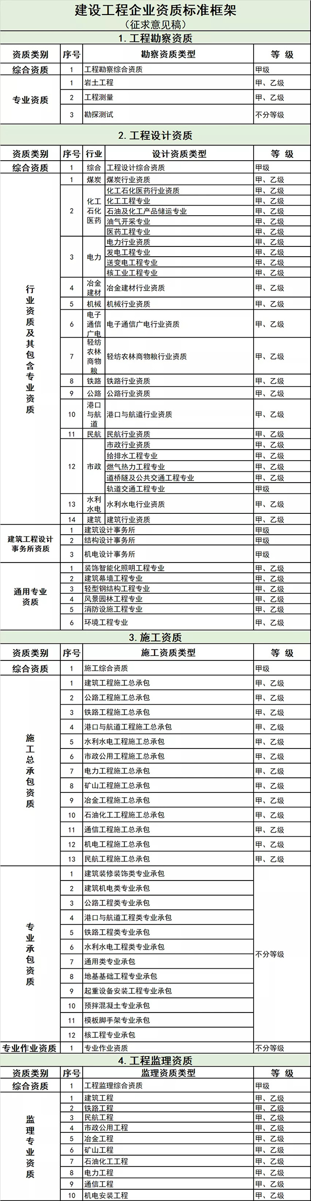最终自2020年7月2日住建部发布备受瞩目的《建设工程企业资质标准框架(征求意见稿)》将正式尘埃落定!
