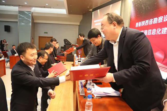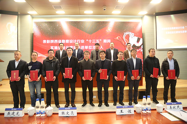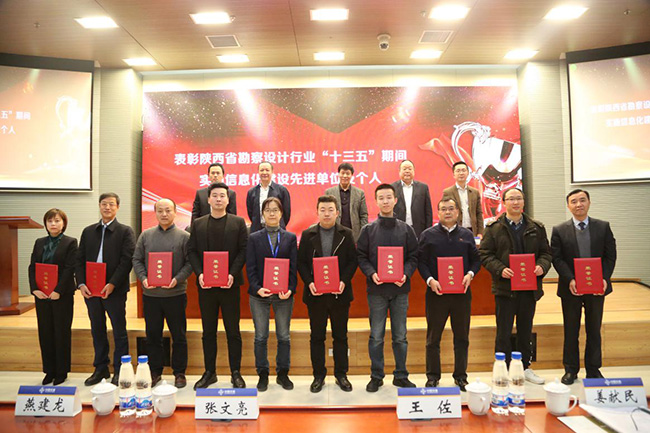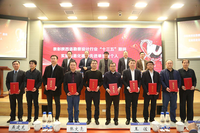 会议还对陕西省工程勘察设计行业“十三五”期间实施信息化建设先进单位及个人进行了表彰,燕建龙秘书长宣读了获奖名单,张文亮理事长、王佐副总经理、燕建龙秘书长、信息化工作委员会康琦秘书长、天强管理顾问副总经理赵月松为先进单位及个人颁奖。