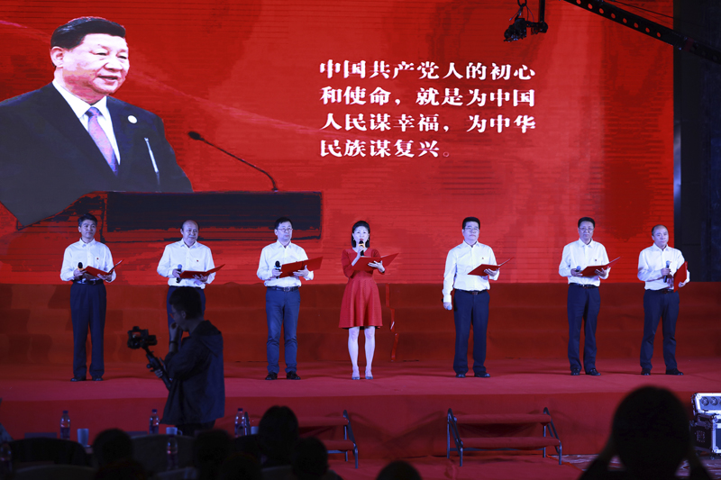 重组整合后,团结奋进的新西勘领导班子在庆祝建国70周年职工读书活动中集体朗诵