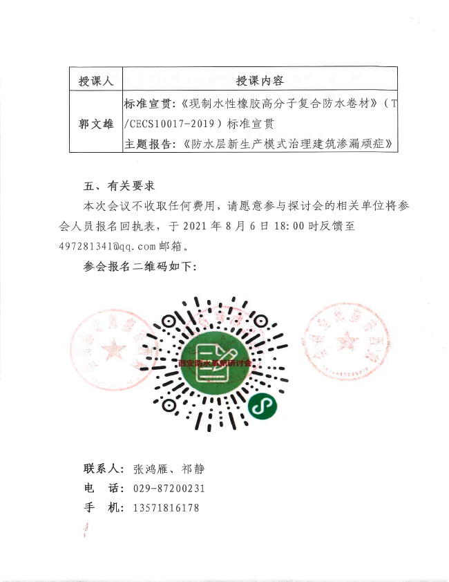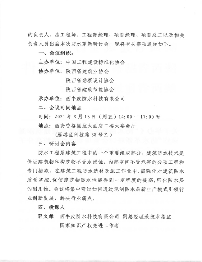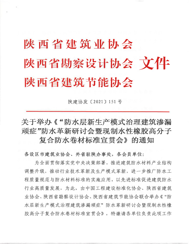 关于举办《“防水层新生产模式治理建筑渗漏顽症”防水革新研讨会暨现制水性橡胶高分子复合防水卷材标准宣贯会》的通知