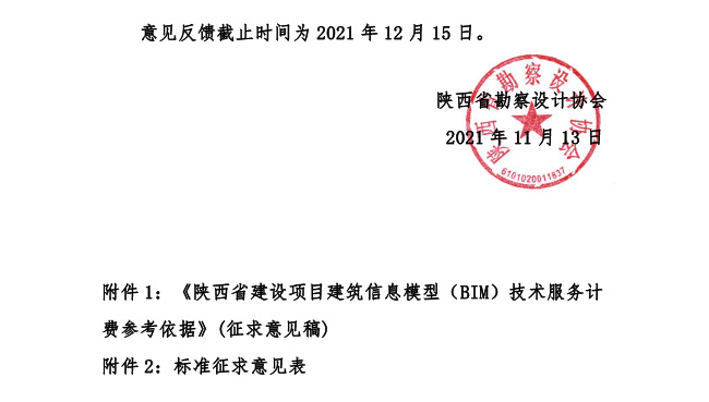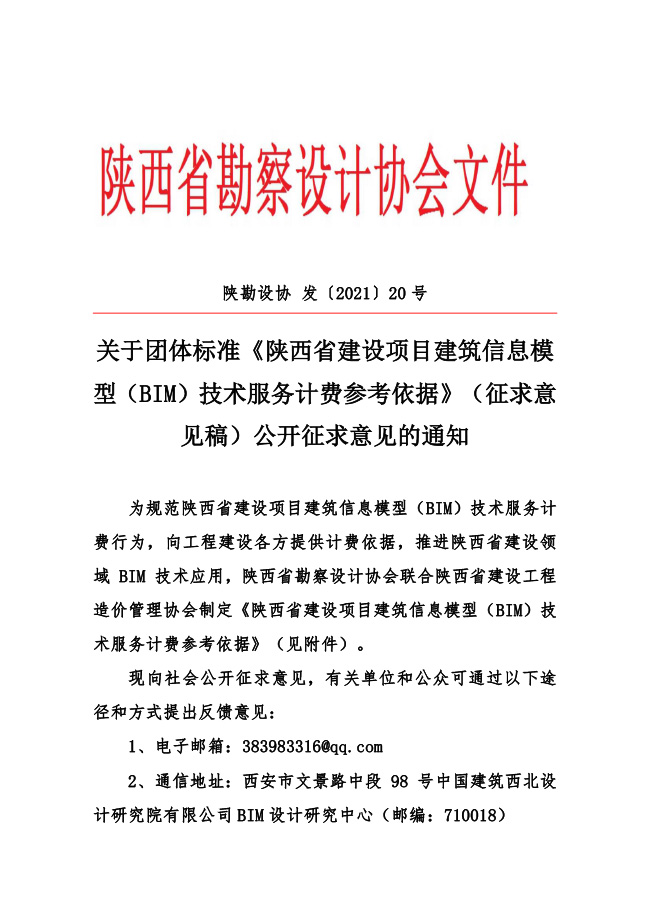 关于团体标准《陕西省建设项目建筑信息模型(BIM)技术服务计费参考依据》(征求意见稿)公开征求意见的通知