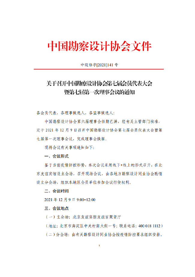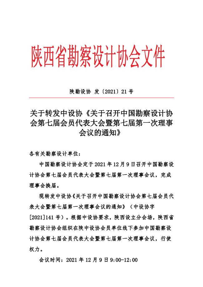 2021年21号文-中勘协第届会员代表大会暨第七届第一次理事会的通知