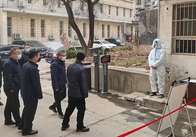 申斌学一行先后检查了疫情防控期间门卫门禁执行、防疫应急值守、临时隔离点设置、应急车辆保障、生活区管理等工作。申斌学强调,要正确认识当前疫情形势的严峻性,认真落实西安市政府和公司关于疫情防控工作的各项要求,积极配合社区开展各项工作。要坚持落实门禁制度,坚持做好应急值守工作和个人防护,严防聚集性疫情。同时,还要持续加强办公区及其周边区域的卫生管理工作,严防出血热等其他疫情蔓延。