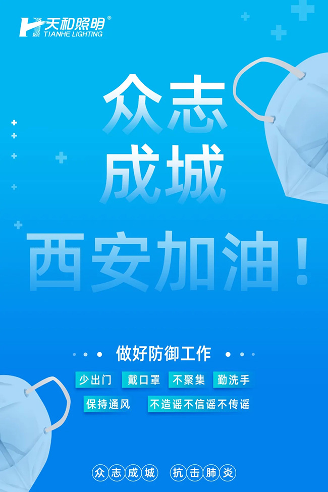 疫情防控关乎着每个人的生命健康安全,天和照明将继续履行企业职责和社会担当,以绵薄之力为抗击疫情而积极努力。
