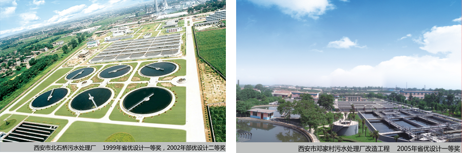 西安市北石桥污水处理厂1999年获省优设计一等奖,2002年获部优设计二等奖